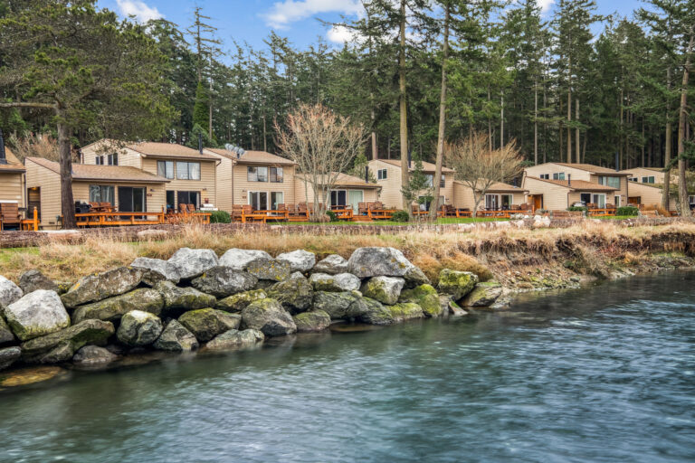 At Smuggler’s Villa Resort you’ll savor the natural beauty and relaxed pace of the San Juan Islands. Located on the north shore of Orcas Island, our vacation villas face the most breathtaking sunsets in the Pacific Northwest. Our large, comfy condo’s are perfect for young families and old friends, each with two bedrooms, full bath (larger units have additional beds and bath), free Wifi, fireplace, Dish TV, kitchen and laundry. Sliders from living/dining area open onto your own spacious deck with BBQ, lounge chairs to catch the afternoon sun and incredible views.